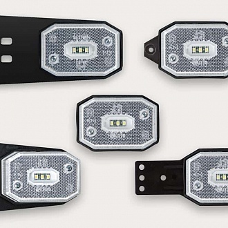 Фонарь габаритный LED белого цвета с плоским кронштейном, светоотражателем, проводом и эл. быстросоединением типа QS150. |