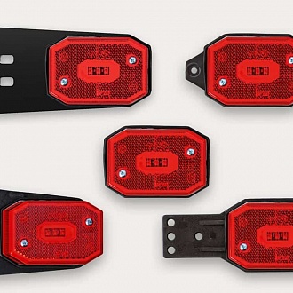 Фонарь габаритный LED красного цвета с плоским кронштейном, светоотражателем и проводом. |